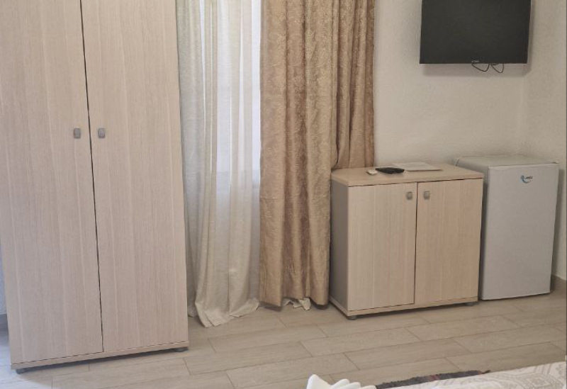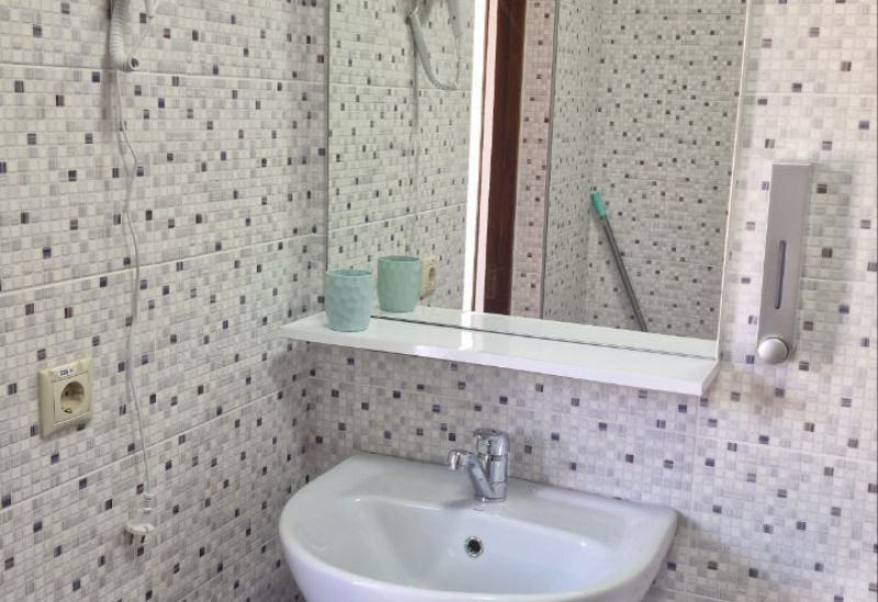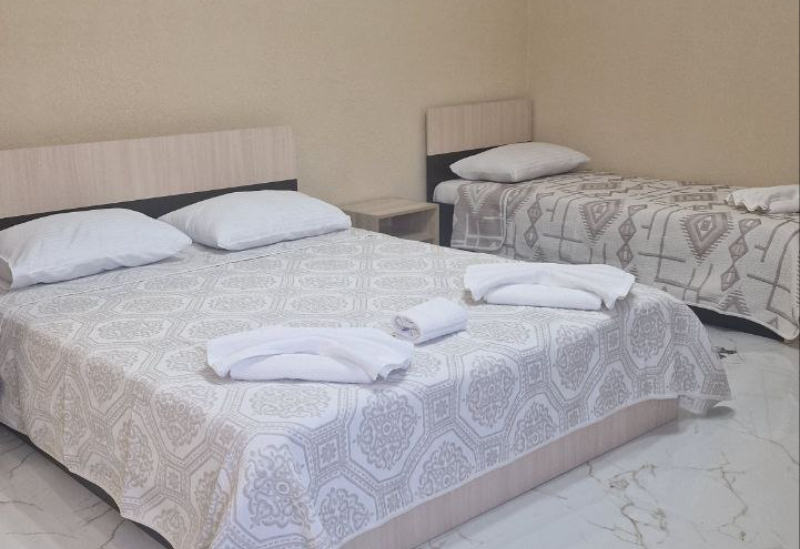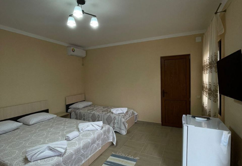 Площадь номера - 24 кв.м. 1 комната. 3 осн. места. одна 2-спальная и одна 1-спальная кровати. В номере: телевизор; кондиционер; душ; туалет; фен; мини-холодильник; сушилка для белья.